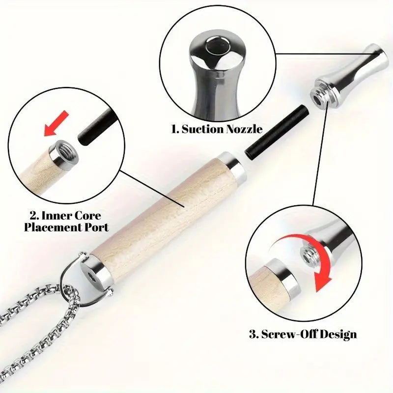 Designed for daily use, the QuitNic mini combines comfort, simplicity, and style. Each pull provides a cool, refreshing taste experience using a small flavour cartridge inside the pendant. The device uses natural flavour concentrates and air-flow technology to create a smooth sensation with every inhale — no heat, vapor, or electronic parts.
